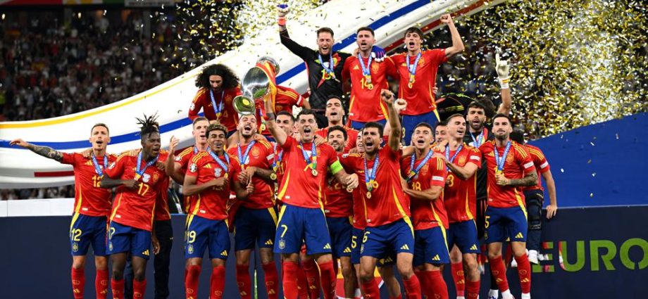 स्पेनले कीर्तिमानी चौथो पटक युरोकपको उपाधि जितेको छ । जर्मनीको बर्लिनमा भएको फाइनलमा इंग्ल्याण्डलाई २(१ ले पराजित गर्दै स्पेनले सर्वाधिक चौथो पटक युरो जित्ने कीर्तिमान बनाएको हो ।स्पेनका लागि निको विलियम्स र मिकेल ओयाजाबालले गोल गरे । इंग्ल्याण्डका कोल पाल्मरले एक गोल फर्काए ।पहिलो हाफको खेल गोलरहित बराबरीमा सकिए पनि दोस्रो हाफमा तीन गोल भएको थियो ।खेलको ४७औं मिनेटमा निको विलियम्सले गोल गर्दै स्पेनलाई पहिले अग्रता दिलाएका थिए । तर ७३औं मिनेटमा कोल पाल्मरले इंग्ल्याण्डका लागि बराबरी गोल फर्काए । निर्धारित समयमा खेल बराबरीतर्फ अघि बढिरहेको थियो बेला ८६औं मिनेटमा ओयाबाजलले गोल गर्दै स्पेनलाई २(१ को अग्रता दिलाए । त्यही अग्रता कायम राख्दै स्पेनले खेल जित्यो र चौथो पटक युरो च्याम्पियन बन्यो ।स्पेनले सन् १९६४ को दोस्रो संस्करणमा पहिलो पटक उपाधि जितेको थियो भने सन् २००८ र २०१२ मा लगातार युरो जितेको थियो । स्पेन युरोको सर्वाधिक सफल टोली बनेको छ ।इंग्ल्याण्ड भने लगातार दोस्रो पटक उपविजेतामै रोकिएको छ । यसअघि २०२१ मा भएको युरोको फाइनलमा इंग्ल्याण्ड घरेलु मैदानमै इटलीसँग पेनाल्टीसुटआउटमा पराजित भएको थियो । स्पेनले युरो २०२४ मा खेलेको सबै ७ खेल जित्यो । समूह चरणमा इंग्ल्याण्डले क्रोएसियालाई ३(० तथा इटली र अल्वानियालाई समान १(०ले पराजित गर्दै क्लिनसिट राखेको थियो । यस्तै अन्तिम १६ मा युरोको नवप्रवेशी जर्जियालाई ४(१ ले पराजित गरेको स्पेनले क्वाटरफाइनलमा आयोजक जर्मनी, सेमिफाइनलमा फ्रान्स तथा फाइनलमा इंग्ल्याण्डलाई समान २(१ को नतिजामा पराजित गरेको हो । स्पेनले प्रतियोगिताभर कुल १५ गोल गर्दा ४ गोल बेहोरेको थियो ।