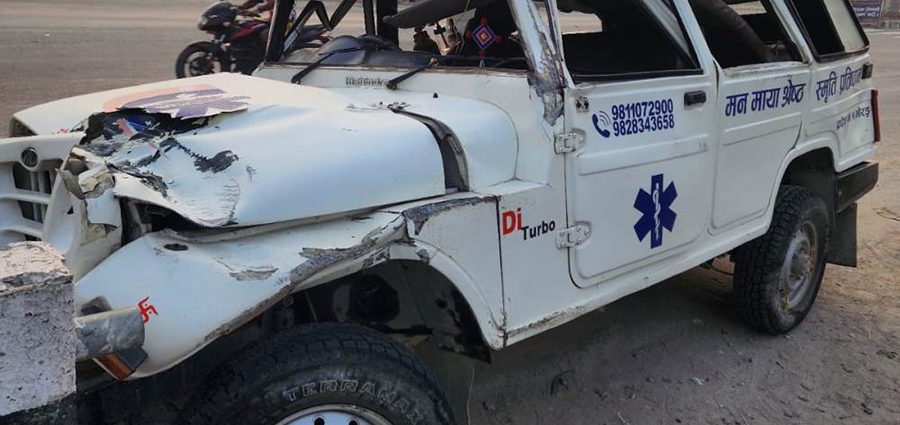 विराटनगर । कोशी राजमार्गको मोरङको बूढीगंगा खण्डमा एम्बुलेन्स दुर्घटना हुँदा चालकको मृत्यु भएको छ । जिल्ला ट्राफिक प्रहरी कार्यालय मोरङका अनुसार शनिबार राति कोशी राजमार्गअन्तर्गत बूढीगंगा गाउँपालिका–३ स्थित महालक्ष्मी वायरअगाडि मनमाया श्रेष्ठ स्मृति प्रतिष्ठान मोरङको को १ च ४७७४ नम्बरको एम्बुलेन्स दुर्घटना हुँदा चालक २४ वर्षीय आशिष राईको मृत्यु भएको हो । दुर्घटना गम्भीर घाइते राईलाई उपचारका लागि विराट शिक्षण अस्पताल भर्ना गरिएको थियो । उपचारका क्रममा उनको मृत्यु भएको हो । मृतक चालक उदयपुरको पञ्चावती घर भइ मोरङको बूढीगंगा–२ मा बस्दै आएका थिए । तीव्र गतिका कारण दुर्घटना भएको हुनसक्ने प्रहरीले बताएको छ । एम्बुलेन्स कता जाँदै थियो भन्ने खुलेको छैन ।