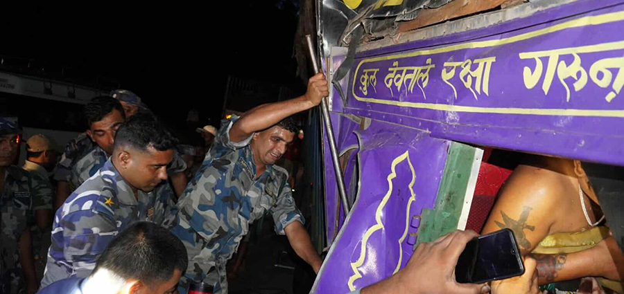 काठमाडौं । बाराको जितपुर सिमरा उपमहानगरपालिका–२१ चुरियामाई मन्दिरको जंगलमा दुई वटा ट्रक ठोक्किँदा घाइते भएका चालकको तीन घण्टापछि उद्धार भएको छ । आइतबार साँझ एउटै दिशाबाट जाँदै गरेका दुई ट्रक एक आपसमा ठोक्किएर दुर्घटना भएको थियो । सो क्रममा स्टेरिङमा च्यापिएका चालकलाई तीन घण्टापछि ट्रकको झ्याल काटेर निकालिएको हो । तीन घढटापछि उद्धार गरिएका चालक चितवनको भरतपुर उपमहानगरपालिका–१६ बस्ने अन्दाजी ३५ वर्षीय अरुण श्रेष्ठ छन् । उक्त स्थानमा सशस्त्र प्रहरी बल नेपाल नं. १४ गण मकवानपुरबाट सशस्त्र प्रहरी निरीक्षक अनिल कार्कीको कमाण्डमा खटिएको सुरक्षा फौजले उनको उद्धार गरेको सशस्त्र प्रहरीका सहप्रवक्ता तथा डीएसपी शैलेन्द्र थापाले बताए । हेटौडाबाट पथलैयातर्फ जाँदै गरेको ना ७ ख ७३०१ नम्बरको ट्रकलाई सोही दिशातर्फ जाँदै गरेको ना ६ ख ३७६३ नम्बरको ट्रकले ठक्कर दिँदा दुवै ट्रक सडकको बायाँतर्फको साइडमा पल्टिएर दुर्घटना भएको थियो । दुर्घटनामा परी घाइते भएका श्रेष्ठ ना ६ ख ३७६३ नम्बरको ट्रकको चालक हुन् । उद्धार पश्चात उनलाई उपचारको लागि जिल्ला अस्पताल हेटौंडातर्फ पठाइएको छ भने अर्का ट्रकका चालक भने सामान्य रहेका छन् । दुवै ट्रकमा चालक बाहेक अन्य कोही नरहेको बताइएको छ ।
