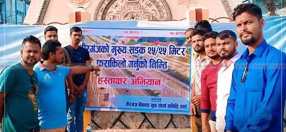 वीरगञ्ज । वीरगञ्ज विकास युवा संघर्ष समितिको आयोजनामा वीरगञ्जको मुख्य सडक विस्तार (चौडा गर्ने) माग गर्दै सुरु गरिएको चरणबद्ध आन्दोलन अन्तर्गत हस्ताक्षर अभियान आज दोस्रो दिनमा पुगेको छ। वीरगञ्जको केन्द्र घण्टाघरमा आयोजित हस्ताक्षर अभियानमा आज पनि उल्लेख्य संख्यामा विकासप्रेमी नागरिकहरूको उपस्थिति रहेको समितिले जनाएको छ। कार्यक्रममा सहभागीहरूले वीरगञ्जको ट्राफिक चाप, अव्यवस्थित पार्किङ र सवारी व्यवस्थापनको समस्या समाधानका लागि मुख्य सडक विस्तार अपरिहार्य रहेको बताएका थिए। समितिले सडक विस्तारको माग पूरा नभएसम्म संघर्ष जारी रहने स्पष्ट पारेको छ। सोही सन्दर्भमा भोलि (आइतबार) बिहान ८ बजे घण्टाघरमै तेस्रो दिनको हस्ताक्षर अभियान सञ्चालन गरिने जानकारी दिइएको छ। वीरगञ्ज विकास युवा संघर्ष समितिले जारी विज्ञप्तिमा भोलिको कार्यक्रममा वीरगञ्जका सम्पूर्ण विकासप्रेमी, नागरिक समाज, व्यापारी, बुद्धिजीवी, विद्यार्थी तथा सम्पूर्ण स्थानीयलाई अनिवार्य रूपमा उपस्थित भई अभियानलाई सशक्त समर्थन गर्न आग्रह गरेको छ। समितिका अनुसार वीरगञ्जको शहरी पूर्वाधार विकास, व्यवस्थित यातायात, आर्थिक गतिविधिको प्रवाह र जनजीवनको सहजता सुनिश्चित गर्न मुख्य सडक विस्तार आवश्यक र यथासम्भव चाँडो कार्यान्वयन हुनुपर्नेछ।
