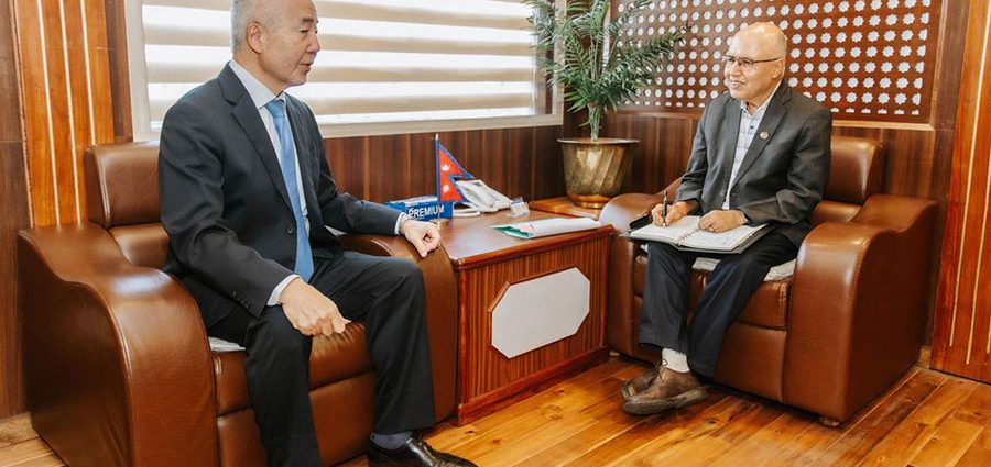 काठमाडौं । अर्थमन्त्री रामेश्वर खनाल र नेपालका लागि जापानका राजदूत माएदा तोरुबीच भेटवार्ता भएको छ । आइतबार अर्थ मन्त्रालयमा भएको भेटमा अर्थमन्त्री खनाल र जापानी राजदूत तोरुबीच नेपालको हालको परिवर्तित अवस्था, नेपाल–जापान ऐतिहासिक सम्बन्ध र जापानले नेपालको आर्थिक सामाजिक विकासमा पुर्याइरहेको सहयोगका विषयमा छलफल भएको छ । छलफलमा अर्थमन्त्री खनालले विशिष्ट परिस्थतिमा गठन भएको वर्तमान सरकारको मुख्य काम तोकिएको समयमा निर्वाचन सम्पन्न गर्नु रहेको बताए । यो अवधिमा पुनर्निर्माण लगायत आर्थिक सामाजिक विकासका कामलाई निरन्तरता दिइने उनले बताए । उक्त अवसरमा निर्माणाधीन नागढुंगा टनेल मार्ग परियोजना, तनहुँ जलविद्युत् आयोजना लगायत सहयोगका क्षेत्रबारे छलफल भएको छ । निकट भविष्यमा सम्झौता हुन गइरहेको कोटेश्वर इन्टरसेक्सन सुधार परियोजना, बीपी राजमार्ग पुननिर्माण सहित परियोजनाबारे समेत छलफल भएको छ । बैठकमा अर्थ सचिव घनश्याम उपाध्याय र वैदेशिक सहायता समन्वय महाशाखा सहसचिव धनीराम शर्मा समेत उपस्थित थिए ।