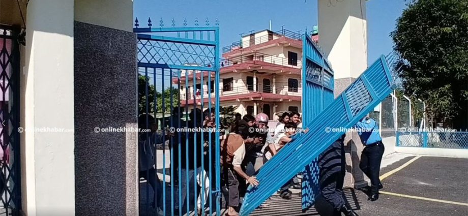 काठमाडौं । नेकपा एमालेका कार्यकर्ताहरुसँग झडप भएपछि आक्रोशित समूहले बाराको सिमरा विमानस्थलको गेट तोडेको छ । केही युवाहरु विमानस्थलको मुख्य प्रवेशद्वारमा रहेको फलामको गेट फुटाएका हुन् । विमानस्थलको मुख्य गेटमा दुई जना मात्र प्रहरी तैनाथ थिए । युवाहरुले विमानस्थलको गेट बाहिरबाट धकेल्न थालेपछि भित्रबाट ती प्रहरीहरुले रोक्न खोजेका थिए । तर प्रहरीहरुले सकेनन् । गेट भाँचिएर प्रहरीकै माथि खसेको थियो । त्यसपछि केही युवाहरु भित्र छिरेका थिए । तर केहीबेरमै उनीहरुलाई प्रहरीले बाहिर निकालेको थियो । बाराको परवानीपुरमा आज आयोजित युवा संघको कार्यक्रममा सहभागी हुन नेकपा एमालेका महासचिव शंकर पोखरेल, महेश बस्नेतसहितको टोली बारा जाँदै छ । नेताहरु बारा नपुग्दै स्थानीय युवा र एमाले कार्यकर्ताहरुबीच सिमरा बजारमा झडप भएको थियो । त्यसपछि आक्रोशि समूह एमाले नेताहरु विमानस्थल आउन लागेको सूचना पाएपछि आक्रोशित केही युवाहरु विमानस्थलको गेट फुटाउँदै भित्र प्रवेश गरेका थिए । तनाव बढेपछि जिल्ला प्रशासन कार्यालयले कर्फ्यु आदेश जारी गरेको छ ।