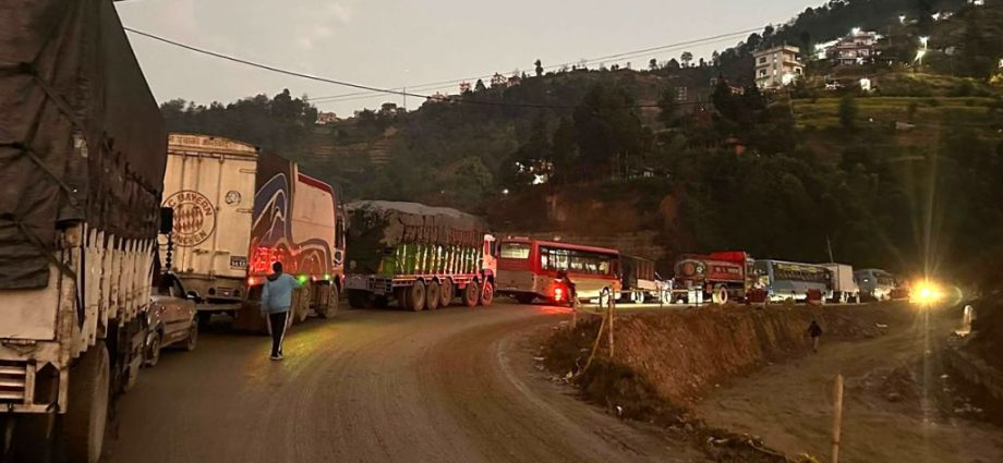 वर्षाका कारण भक्तपुर–साँगा सडकखण्डमा सवारी जाम