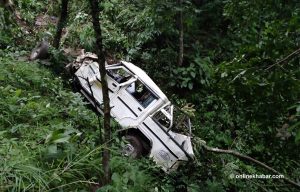 मान्म (कालीकोट) । कालीकोटको शुभकालिका गाउँपालिका-४ सल्लेरीमा शुक्रबार बेलुकी ६ बजे जीप दुर्घटना हुँदा तीन जनाको मृत्यु भएको छ । सेरी पान्तडी सडकको सल्लेरीमा उकालो चढ्ने क्रममा भे१ज २८९८ नम्बरको जीप ब्याक भएर दुर्घटना हुँदा तीन जनाको घटनास्थलमा मृत्यु भएको हो । मृत्यु हुनेमा दुई जना स्काभेटरका अपरेटर र एक जना सहचालक रहेको कालीकोटका प्रहरी प्रमुख हिमबहादुर खत्रीले बताए । उनका अनुसार मृत्यु हुनेमा दैलेख आठबिस नगरपालिका घर भएका २८ वर्षीय शङ्कर कठायत, अछामका टेकेन्द्र शाही र सहचालक कालीकोटको शुभकालिका–२ का नवराज शाही रहेका छन् । मृतक तीनै जना सेरी पान्तडी सडक खन्ने काममा संलग्न थिए । भीरबाट तीन वटै शव निकालेर सडकका ल्याएको र परीक्षणका लागि आफन्त बोलाएर सदरमुकाम लैजाने तयारी भएको प्रहरी प्रमुख खत्रीले बताए । उनका अनुसार गाडी सडकबाट ५०० मिटर तल तिला नदीको किनारामा टुक्राटुक्रा भएको अवस्थामा छ । जिप चालक प्रहरीको सम्पर्कमा आएको तर सोधपुछ गर्न बाँकी रहेको प्रहरीले जनाएको छ । दुर्घटनाको खबर आएपछि सदरमुकाम मान्मबाट प्रमुख जिल्ला अधिकारी गोर्कणराज सुयल, प्रहरी प्रमुख खत्रीसहित जनपद प्रहरी, सशस्त्र प्रहरीसहितको टोली घटनास्थल पुगेको थियो ।