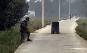 रौतहट । रौतहटको राजपुर नगरपालिका ३ को सडकछेउ शंकास्पद वस्तु फेला परेको छ । वडा नं ३ मा रहेको ग्रामीण सडक किनारमा बेवारिसे अवस्थामा रहेको शंकास्पद वस्तु देखेपछि स्थानीयले प्रहरीलाई खबर गरेका थिए । सूचना प्राप्त हुनासाथ सुरक्षाकर्मीको टोली घटनास्थलमा पुगेको थियो । सुरक्षा संवेदनशीलतालाई मध्यनजर गर्दै गौर पुरेनवास्थित नारायण दल गणबाट नेपाली सेनाको बम डिस्पोजल टोली परिचालन गरिएको छ । बम डिस्पोजल टोलीले उक्त शंकास्पद वस्तुको प्रकृति पहिचान गर्ने तथा आवश्यक प्रक्रिया पूरा गरी सुरक्षित डिस्पोज गर्ने तयारी गरिरहेको नेपाली सेनाको नारायण दल गणले जनाएको छ । घटनास्थल वरपर सर्वसाधारणको आवतजावत रोकिएको छ भने सुरक्षा घेरा कडा पारिएको प्रमुख जिल्ला अधिकारी दिनेश सागर भुसालले बताए ।