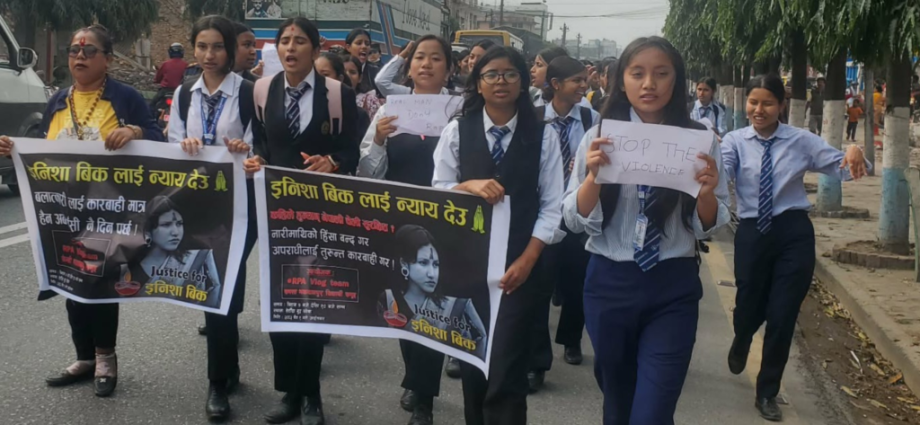 हेटौंडा । मकवानपुरको हेटाैंडामा इनिसा विक हत्याका दोषीलाई कारबाहीको माग गर्दै विद्यार्थीहरूले प्रदर्शन गरेका छन । आइतबार बिहान हेटौंडास्थित विभिन्न क्याम्पसमा अध्ययनरत विद्याथीहरू सडकमा उत्रिएर प्रर्दशन गरेका हुन । प्रर्दशनकाे क्रममा विद्यार्थीहरूले `हत्यारालाई कारबाही गर, पीडितलाई न्याय दे, बलात्कारीलाई फासी दे, नारी अस्मिताको रक्षा गर´ भन्दै नारा लगाएका थिए । हेटौंडा क्याम्पसका विद्यार्थीहरूकाे नेतृत्वमा भएकाे प्रदर्शनमा मकवानपुर बहुमुखी क्याम्पस, भुटनदेवी मावि, सिद्धार्थ ल क्याम्पसमा अध्ययनरत करिब ५ सय विद्याथीहरू उपस्थित रहेकाे विद्यार्थी नितेश भण्डारीले बताए । सुर्खेतको वीरेन्द्रनगरस्थित सामुदायिक वनमा विक मृत अवस्थामा भेटिएकी थिइन् । विककाे बलात्कारपछि हत्या भएकाे आराेप लगाउँदै दाेषीलाई कानुनी कारबाहीकाे माग गर्दै देशका विभिन्न ठाउँमा प्रदर्शन भइरहेकाे छ ।